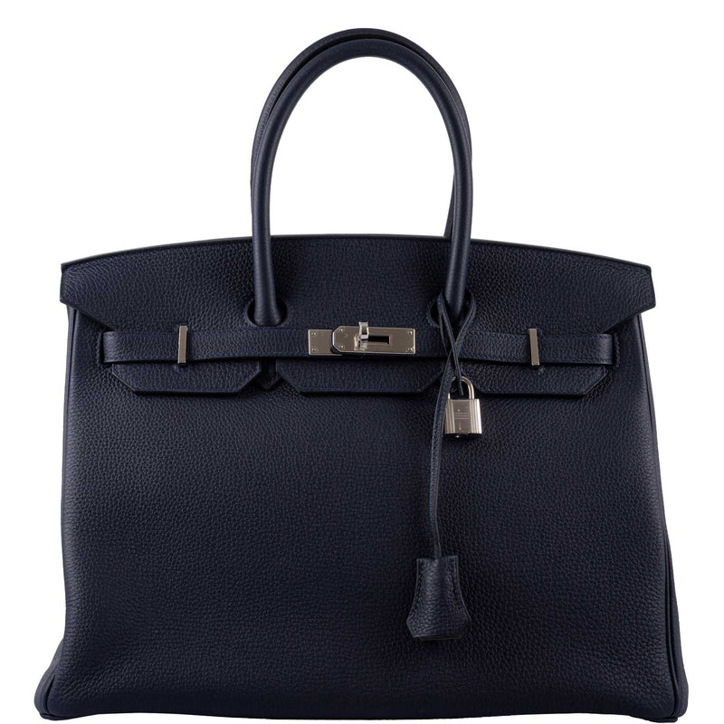 Make a statement and add a touch of luxury to your wardrobe with the Hermès Birkin 35 Blue Nuit/Gris Etain Togo Palladium Hardware 2020. A must-have investment piece that will never go out of style.