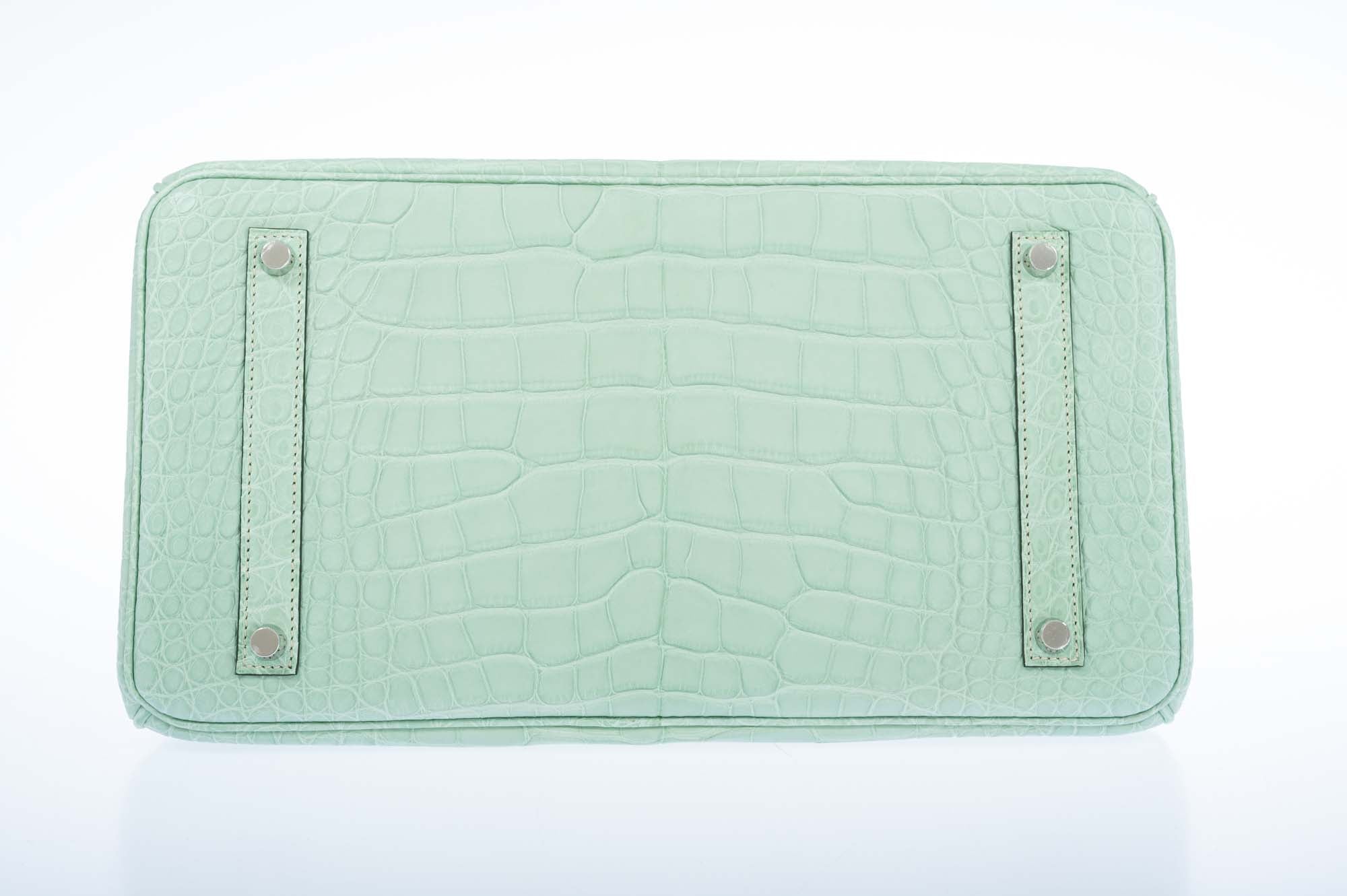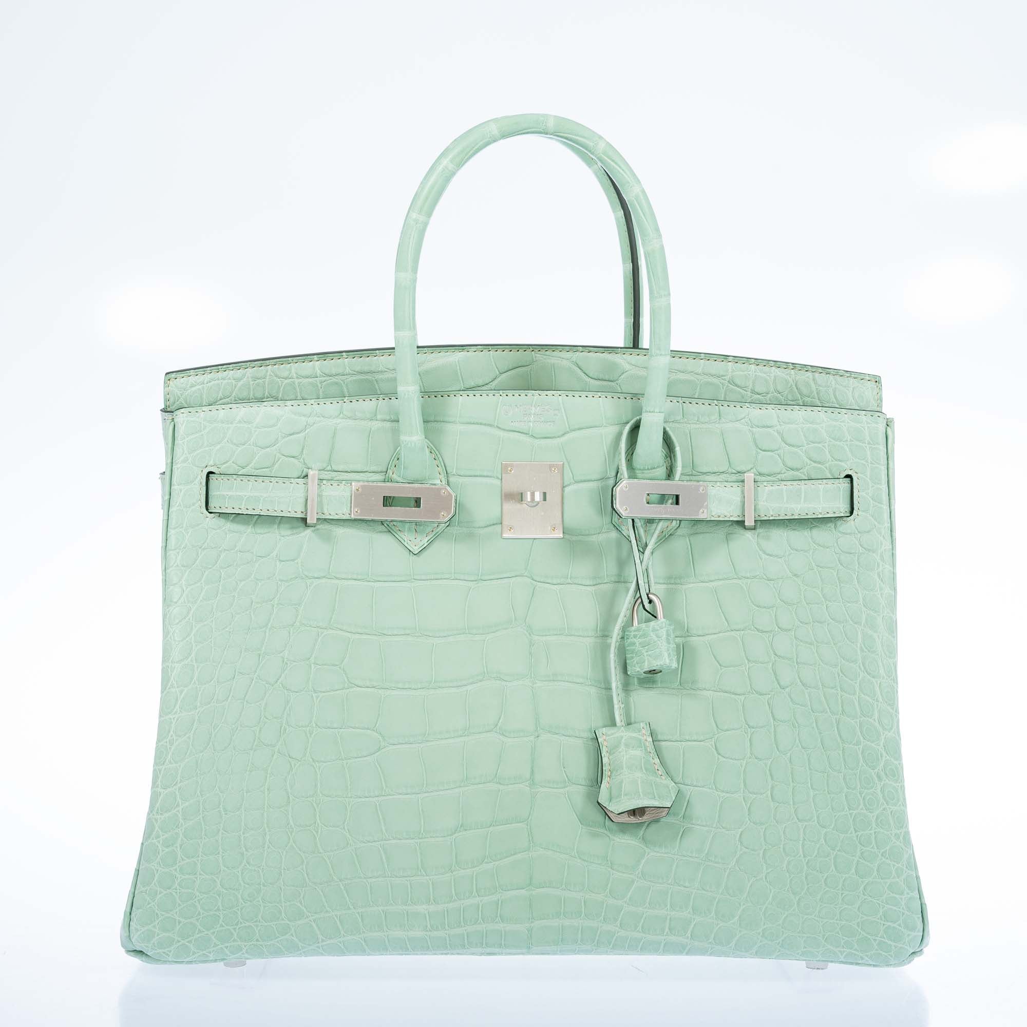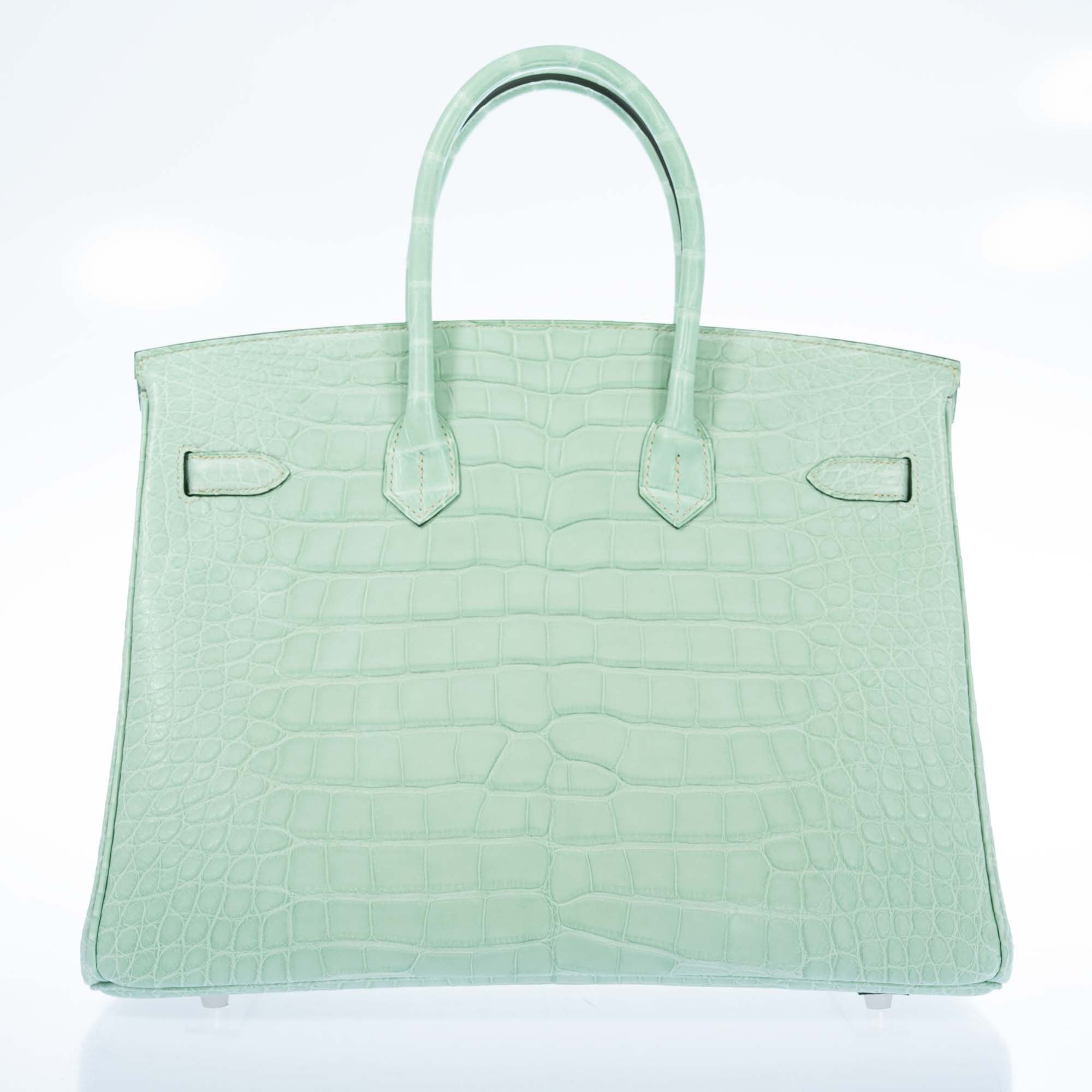 Indulge in luxury with the exquisite Hermès Birkin 35 HSS Alligator Bag in the stunning Vert D’Eau/Gris Perle color combination enhanced with Palladium Hardware. Crafted to perfection, this iconic bag exudes elegance and sophistication in every detail. The alligator leather adds a touch of opulence, making it a statement piece that elevates any outfit.
