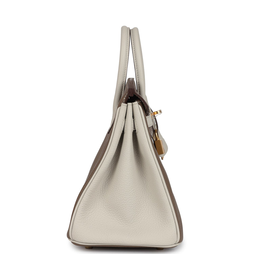 Unleash your inner fashionista with the exquisite Hermès HSS Birkin 25 in Etoupe/Craie Togo leather with Gold Hardware. This special order piece is the epitome of luxury and sophistication, designed to turn heads and elevate your style game. Crafted with precision and attention to detail, this iconic bag exudes timeless elegance and unparalleled craftsmanship.