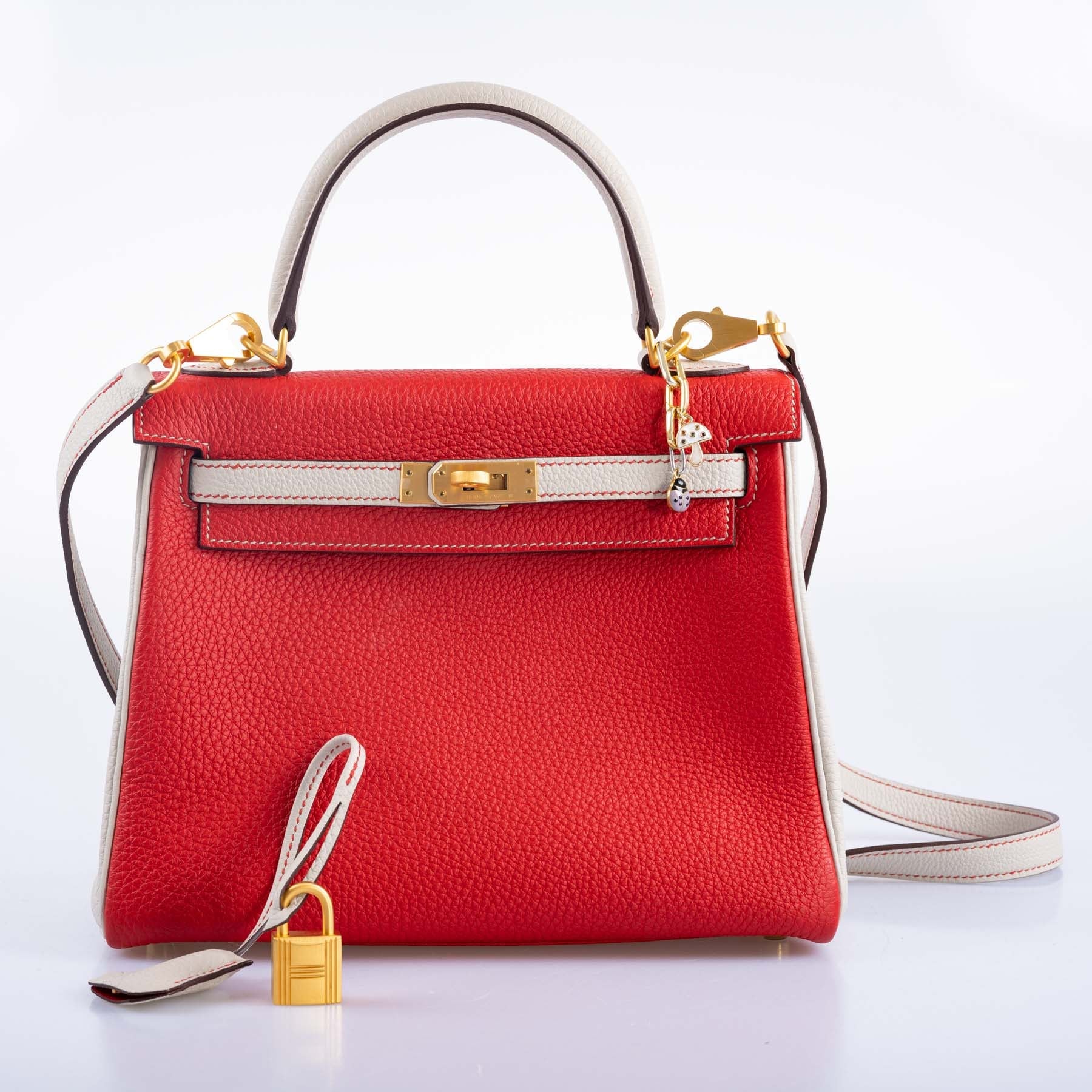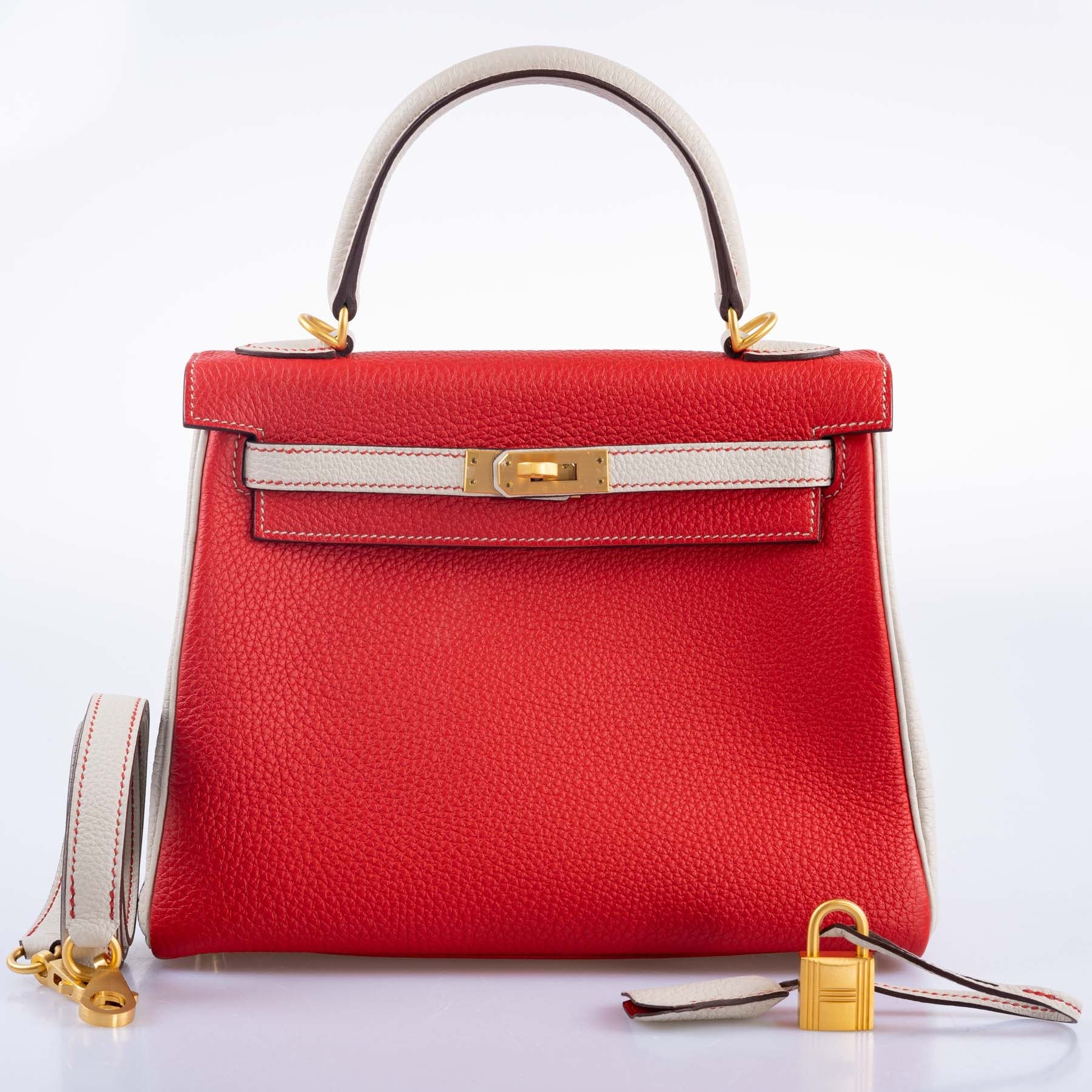 Crafted with absolute precision and elegance, the Hermès Kelly 25 HSS Rouge de Coeur Togo Bag with Gold Hardware is a true masterpiece. This iconic handbag exudes timeless sophistication and luxury. The vibrant Rouge de Coeur color captivates the eyes, making a bold fashion statement.