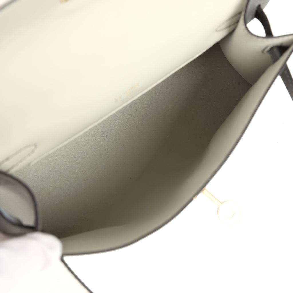 Behold the epitome of luxury and sophistication – the Hermès Special Order Kelly Pochette in Gris Meyer Verso Swift with Permabrass Hardware. This exquisite accessory embodies timeless elegance and exclusivity, crafted by skilled artisans with unparalleled precision and attention to detail.