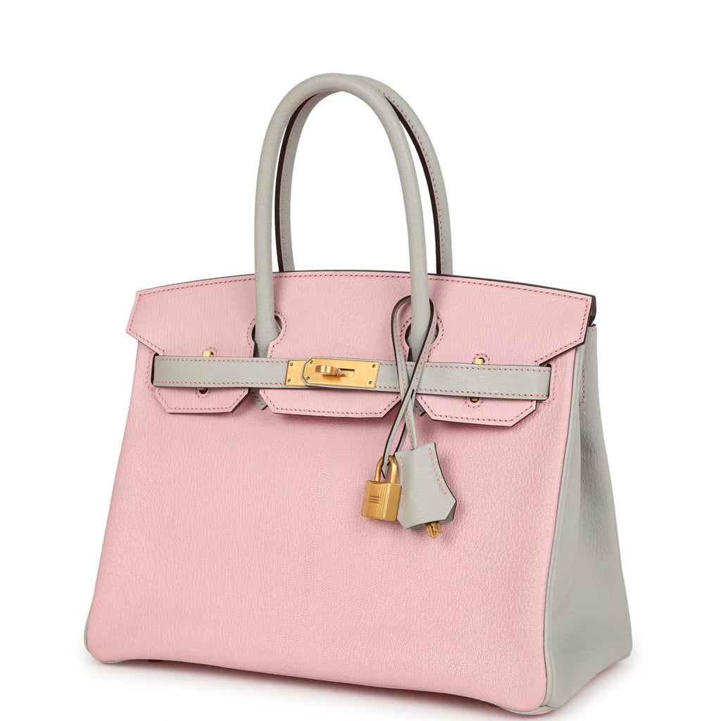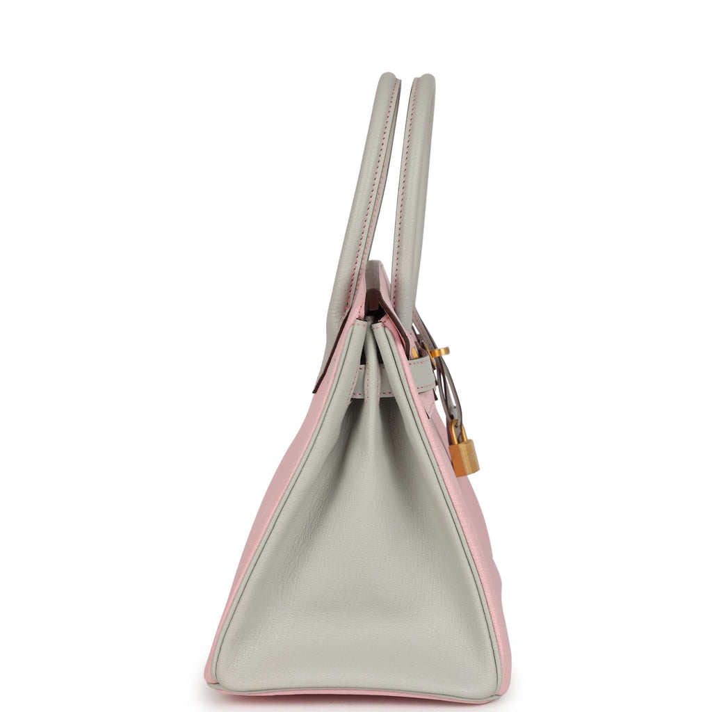 Indulge in luxury with this exquisite Rare Hermès HSS Birkin 30 in the elegant color combination of Rose Sakura and Gris Perle. Crafted from premium Chevre leather and accented with Brushed Gold hardware, this iconic handbag is a true masterpiece that exudes sophistication and style.